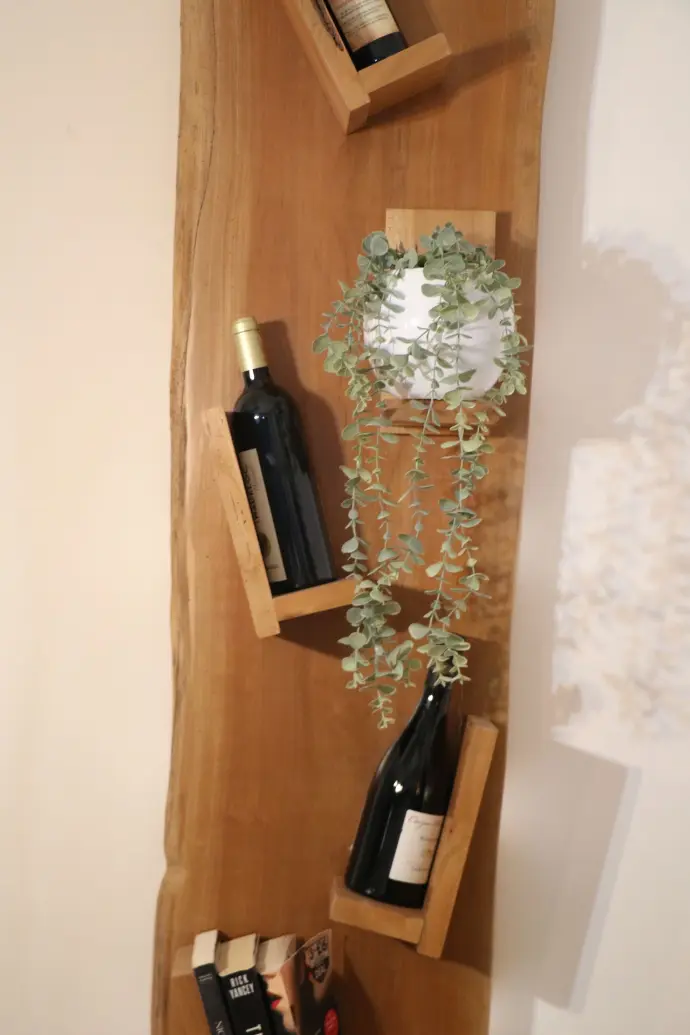 Avec cette grande étagère, vous épaterez votre entourage ! Entièrement réalisée à la main, du ponçage à l’assemblage des étagères, jusqu’à l’installation de l’éclairage, cette pièce a été conçue dans mon atelier en Isère.