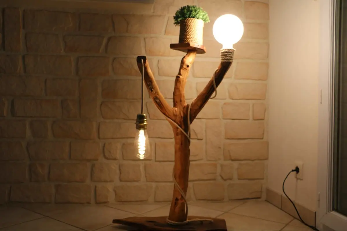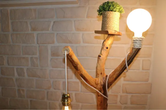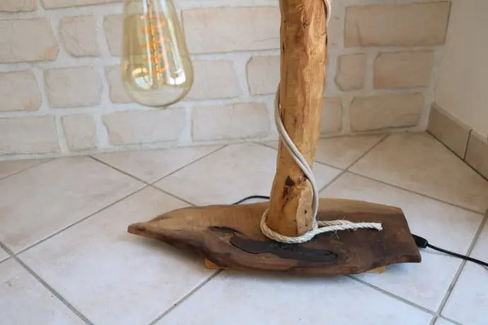 - Une ampoule globe blanche vissée sur une extrémité, habillé de corde naturelle