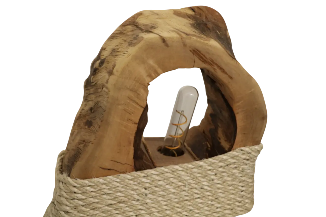 - La lampe Cordéa, pièce artisanale unique, allie la chaleur du bois brut et l’authenticité de la corde naturelle. Sculptée dans une tranche de bois aux courbes organiques, elle met en valeur une ampoule à filament apparent, diffusant une lumière douce et chaleureuse. Sa base habillée de corde torsadée évoque le charme maritime et les textures naturelles. Parfaite pour une décoration rustique, bohème ou industrielle, cette lampe apporte à la fois originalité et authenticité à tout intérieur.